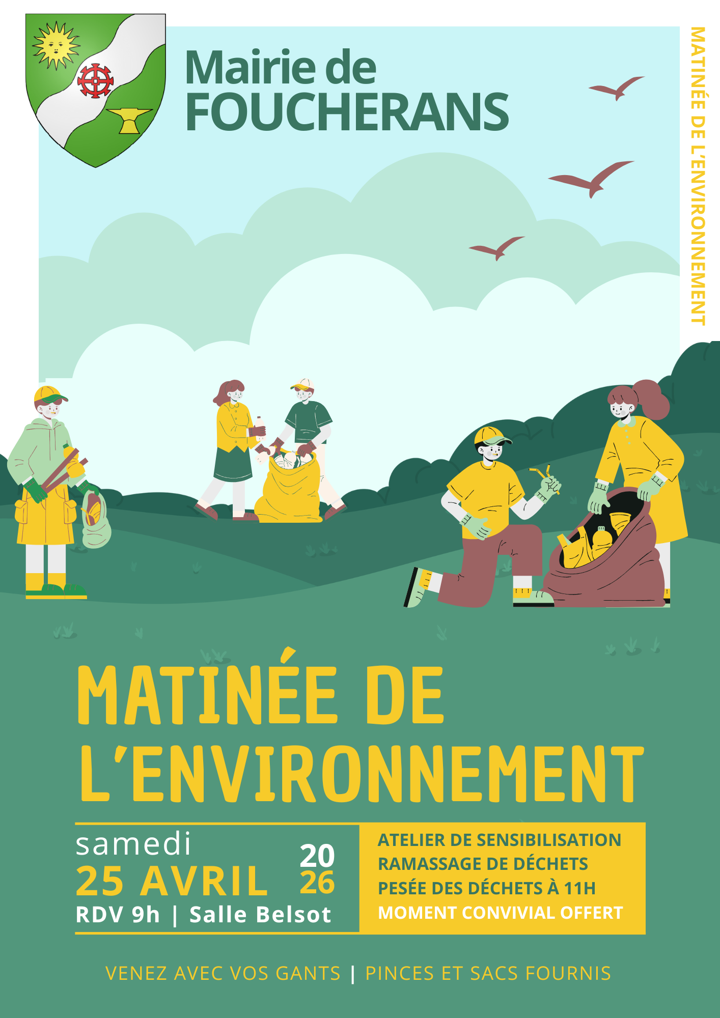 La matinée de l'environnement aura lieu le samedi 25 avril 2026 à 9h00 au départ de la salle Belsot